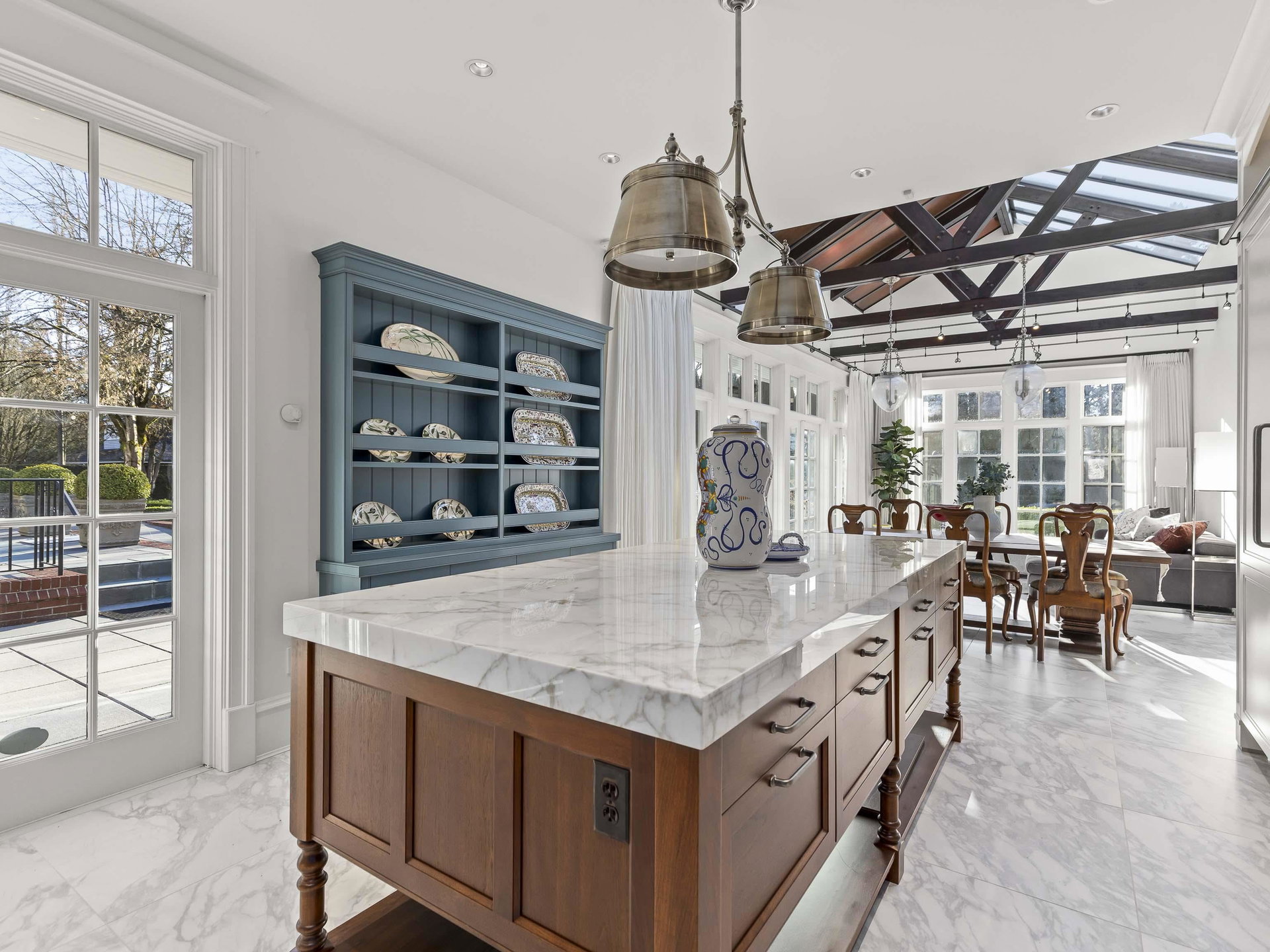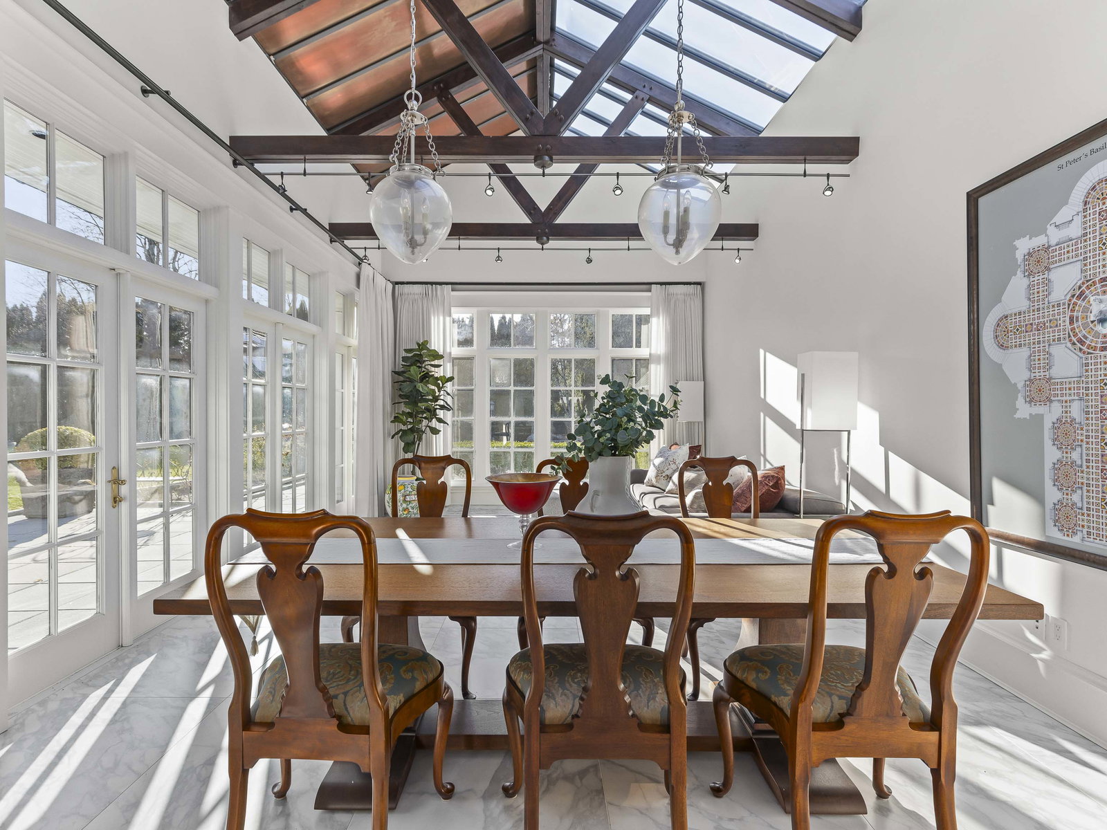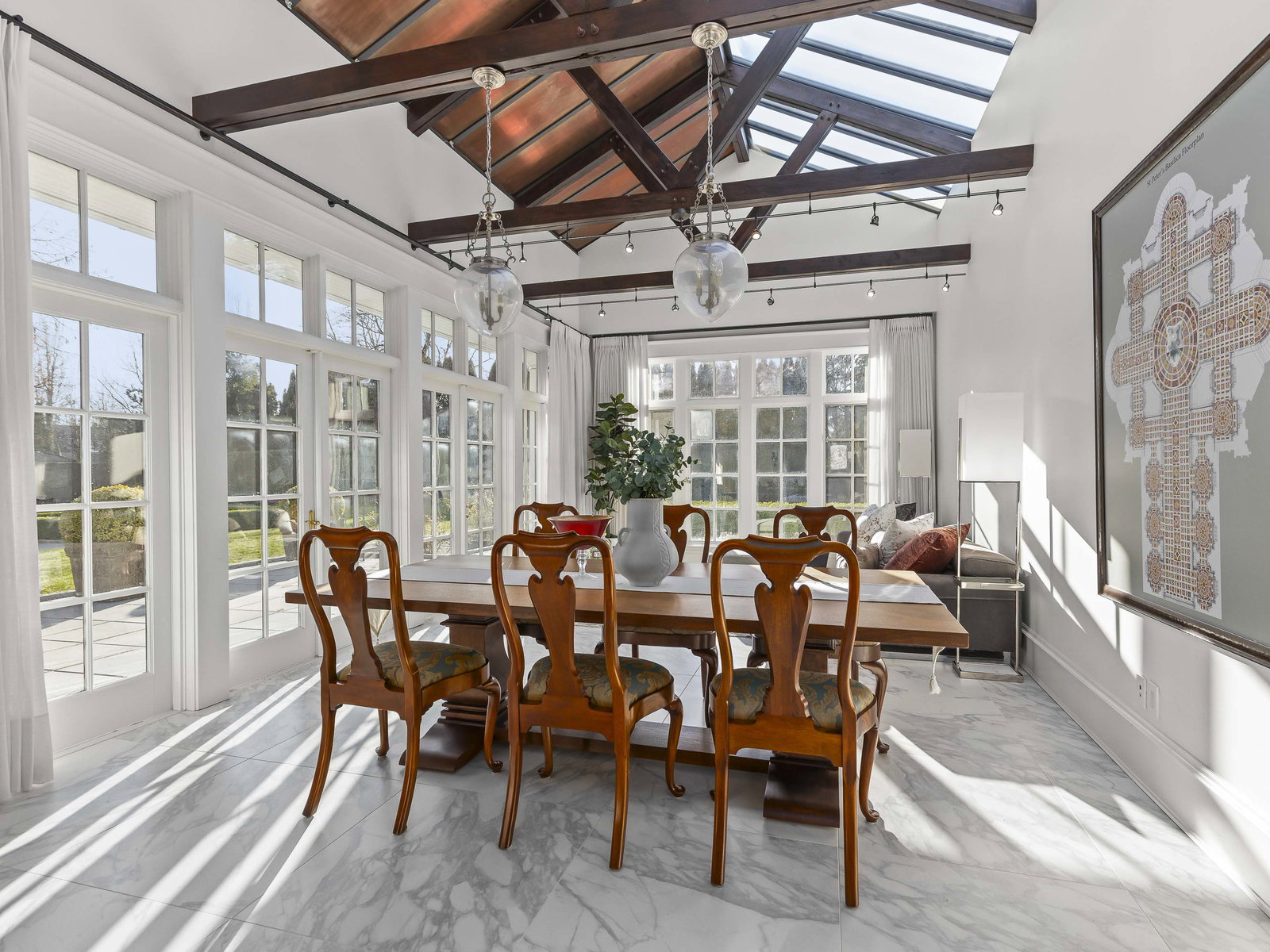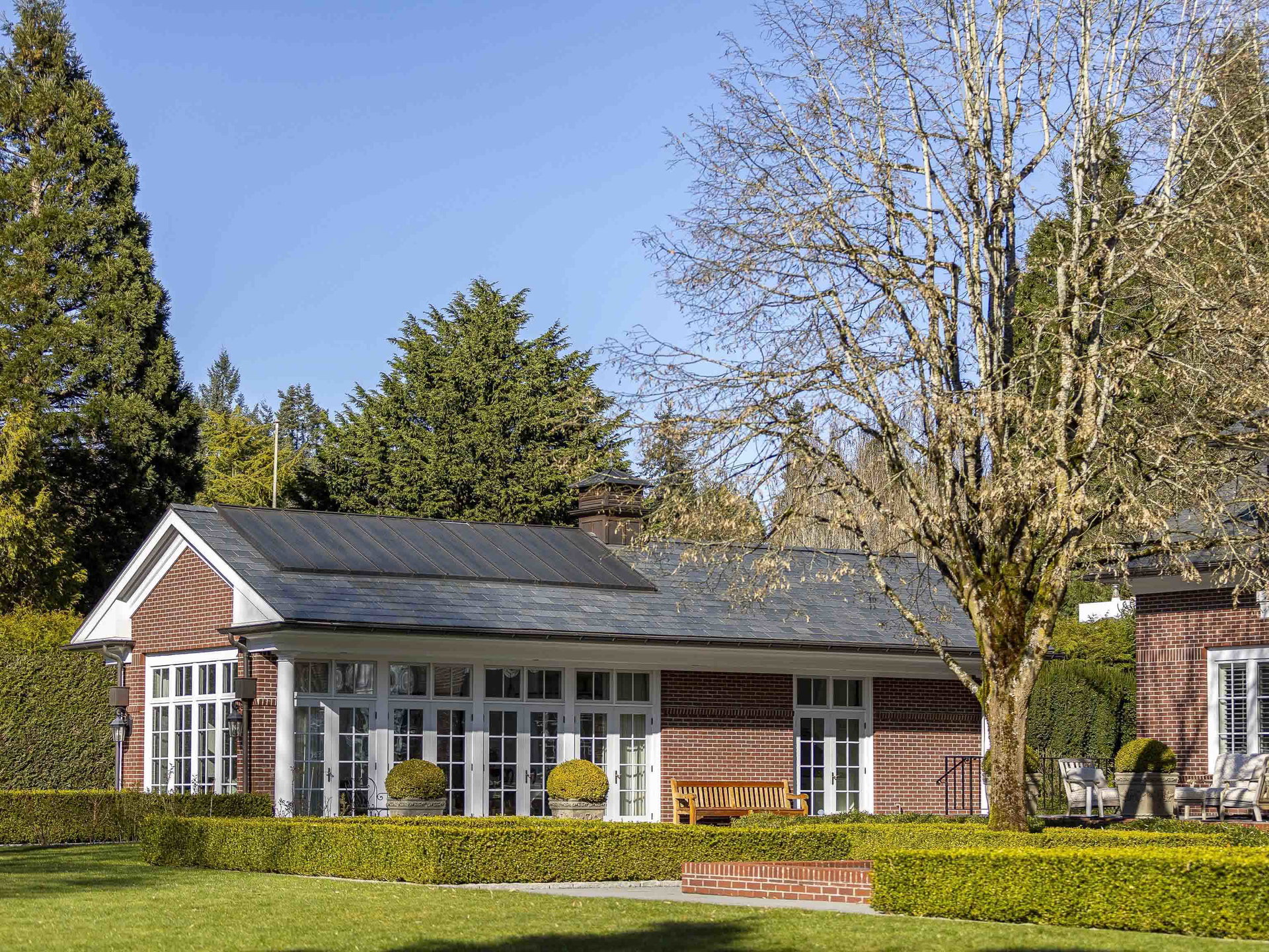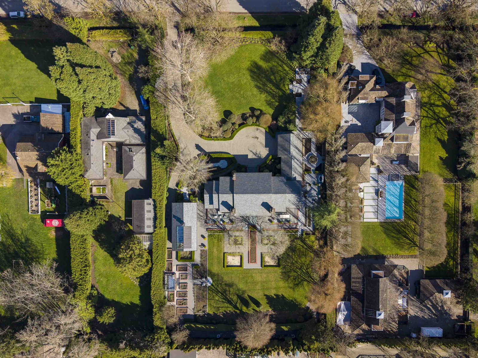 Stunning Southlands estate set on a rare 59,060 sqft lot, this sprawling English manor–inspired residence blends timeless elegance with refined living. The stately red brick home spans 5,638 sqft, featuring beautiful marble and hardwood floors, clean lines, and expansive floor-to-ceiling windows that flood the home with natural light. Grand principal rooms include a formal living and dining room, library, office, family room, and gourmet kitchen designed for both entertaining and everyday living. Upstairs offers a luxurious primary suite with walk-in closet & ensuite, reading area, and additional bedrooms and baths. A separate coach house of 773 sqft. adds flexibility. Surrounded by lush, landscaped gardens, this exceptional property evokes the charm and grace of a classic European manor.