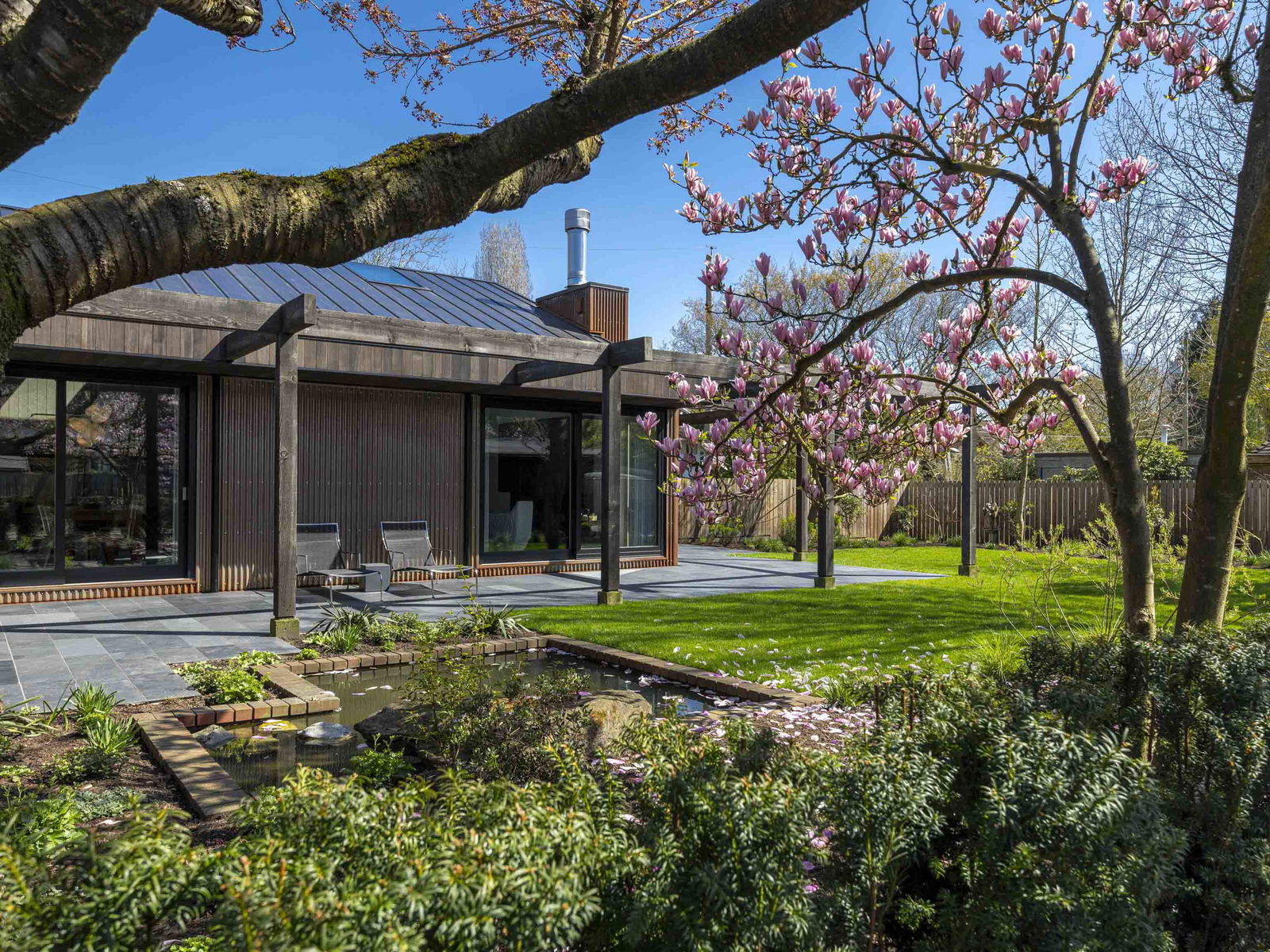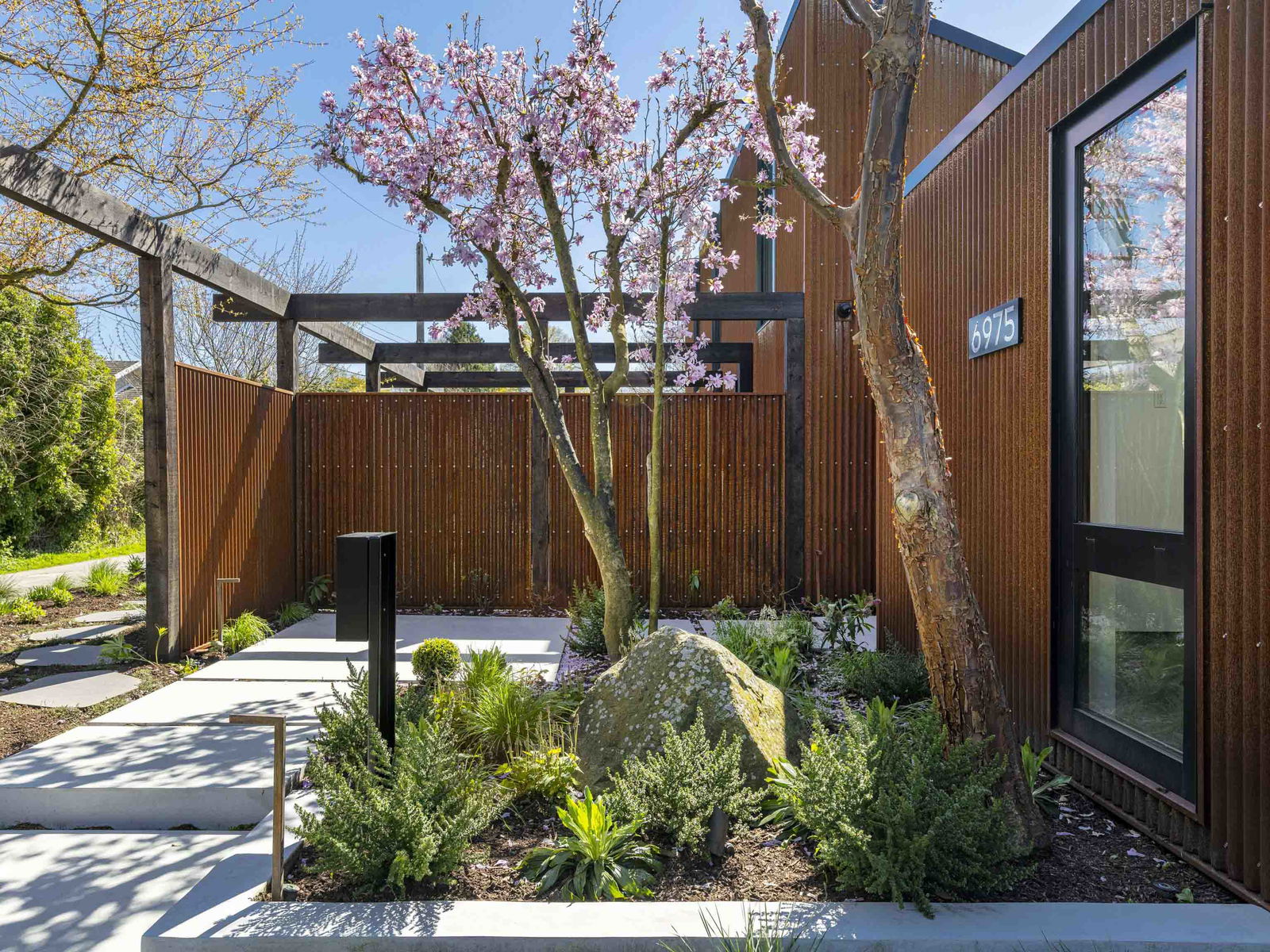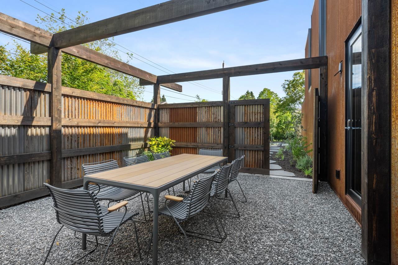Modern rustic masterpiece “Paddock House”, architecturally designed by award winning “Measured”, and built by Eyco Building Group. Extraordinary Southlands residence showcases Corten exterior siding complemented by Botanica-designed landscaping. Inside, marvel at 16’6″ vaulted cedar ceilings, sleek black slate floors, & triple-glazed European windows flooding spaces w/ natural light. Details include custom skylights, oak millwork w/ ambient LED lighting, & Miele appliances. Sophisticated aesthetic continues with Crosswater fixtures, distinctive lighting by Flos and Apparatus, and draperies from Cloth Studio. A blackened steel wood-burning fireplace anchors the living space. Estate includes 2bed guest house+studio. An offering where architectural brilliance meets luxurious functionality.