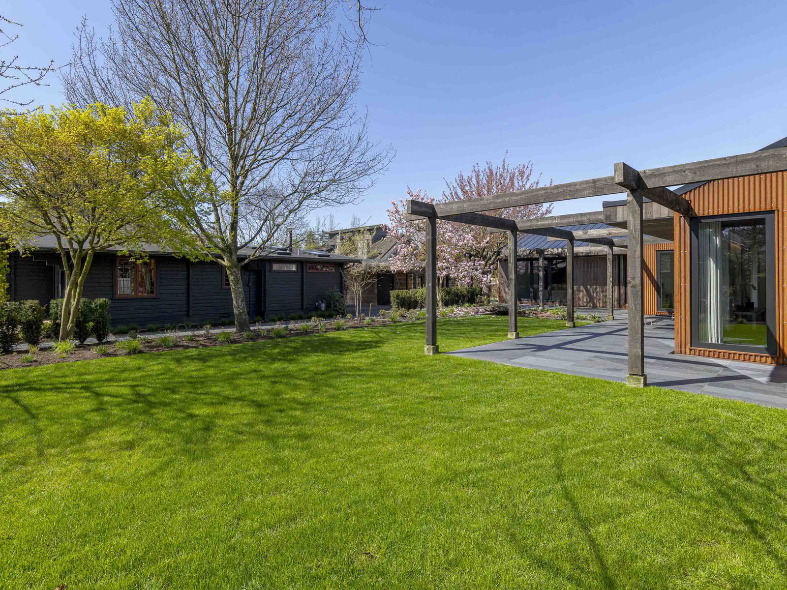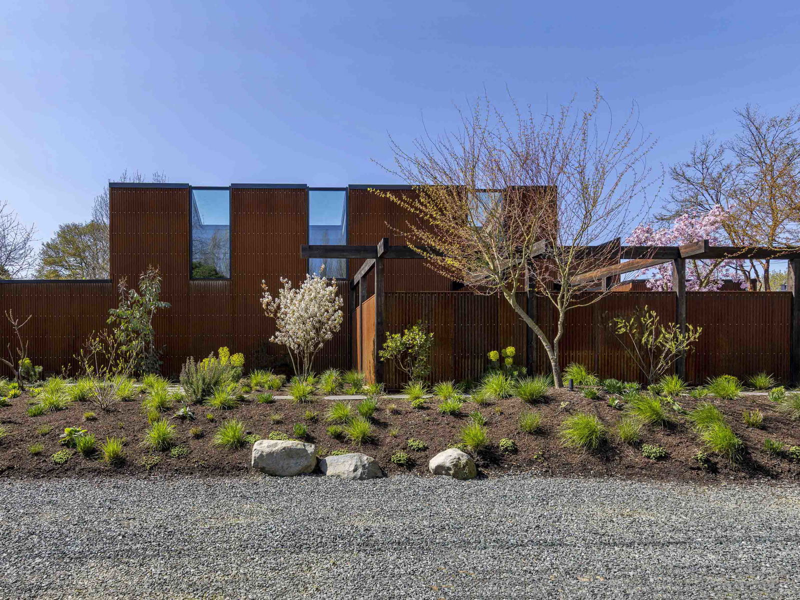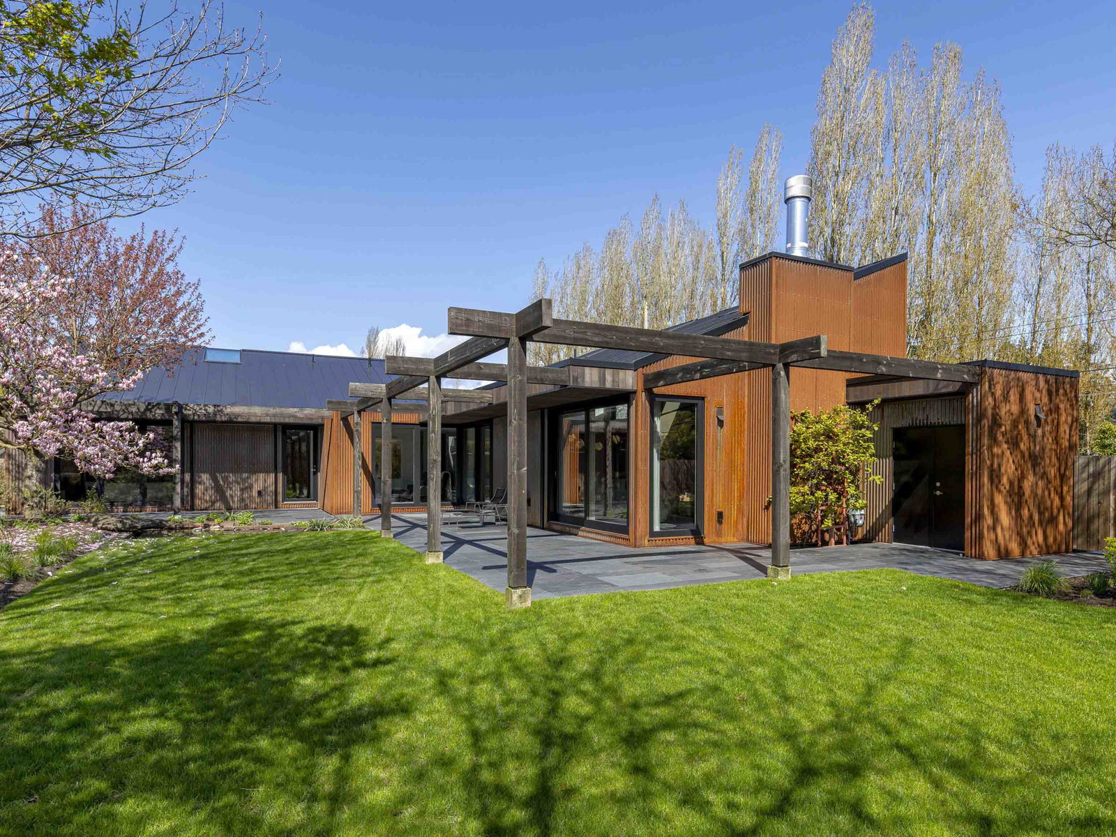 Modern rustic masterpiece “Paddock House”, architecturally designed by award winning “Measured”, and built by Eyco Building Group. Extraordinary Southlands residence showcases Corten exterior siding complemented by Botanica-designed landscaping. Inside, marvel at 16’6″ vaulted cedar ceilings, sleek black slate floors, & triple-glazed European windows flooding spaces w/ natural light. Details include custom skylights, oak millwork w/ ambient LED lighting, & Miele appliances. Sophisticated aesthetic continues with Crosswater fixtures, distinctive lighting by Flos and Apparatus, and draperies from Cloth Studio. A blackened steel wood-burning fireplace anchors the living space. Estate includes 2bed guest house+studio. An offering where architectural brilliance meets luxurious functionality.